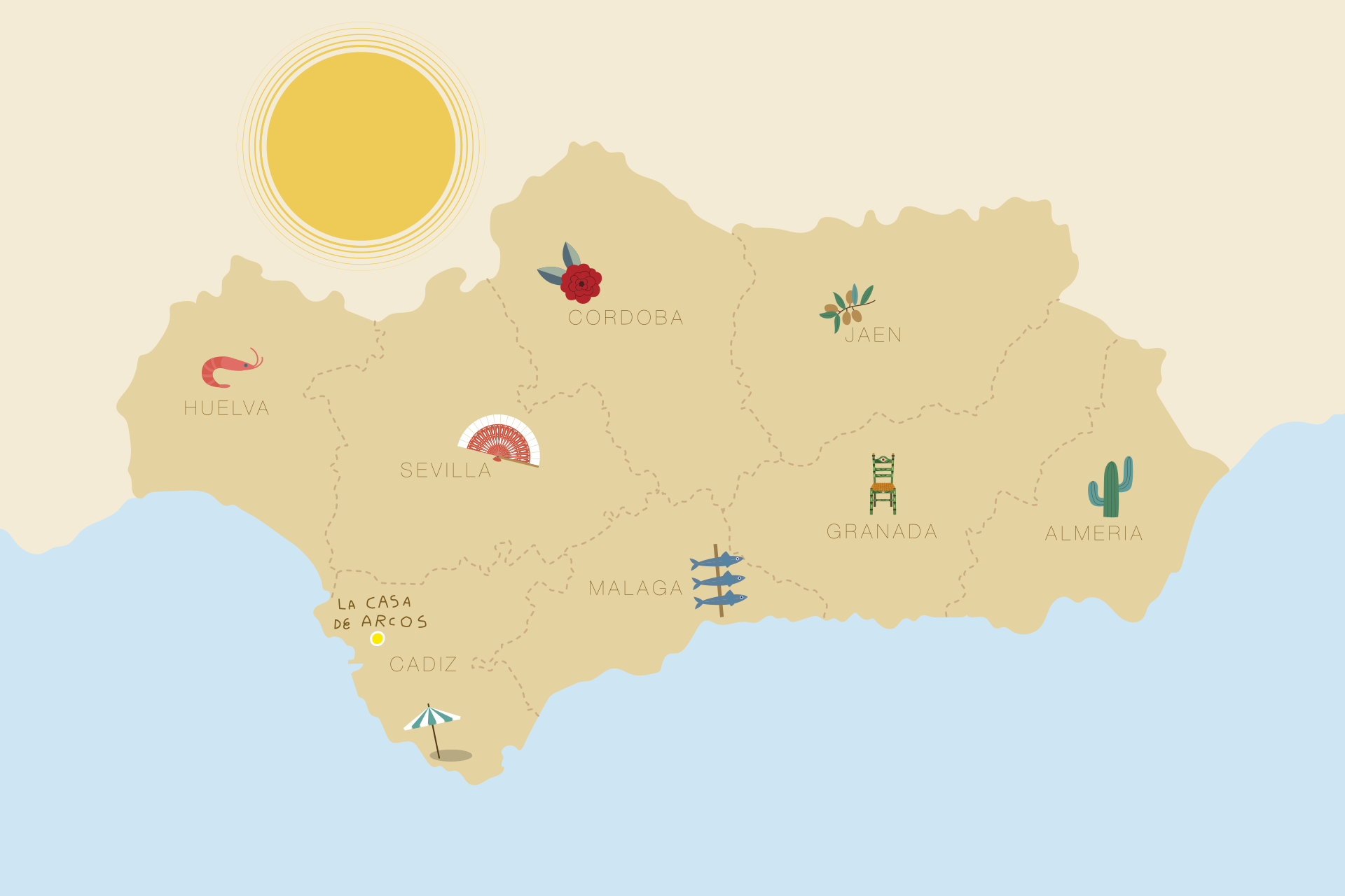 La Casa de Arcos se situe en pleine campagne Andalouse dans la province de Cadiz et à quelques kilomètres de Arcos de la Frontera.